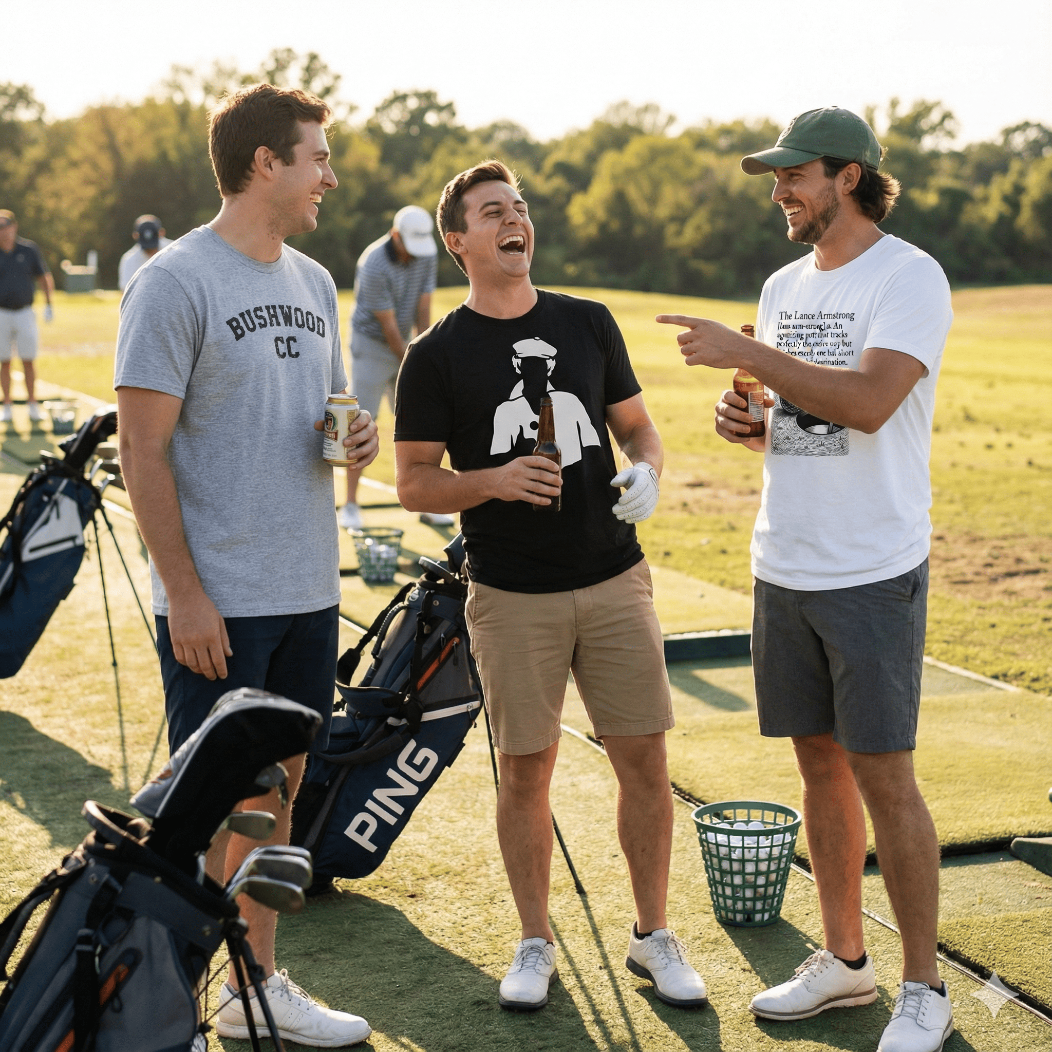 Soft shirts that don't feel like sandpaper. Built to last through cart rides, beer spills, and whatever chaos your weekend brings.